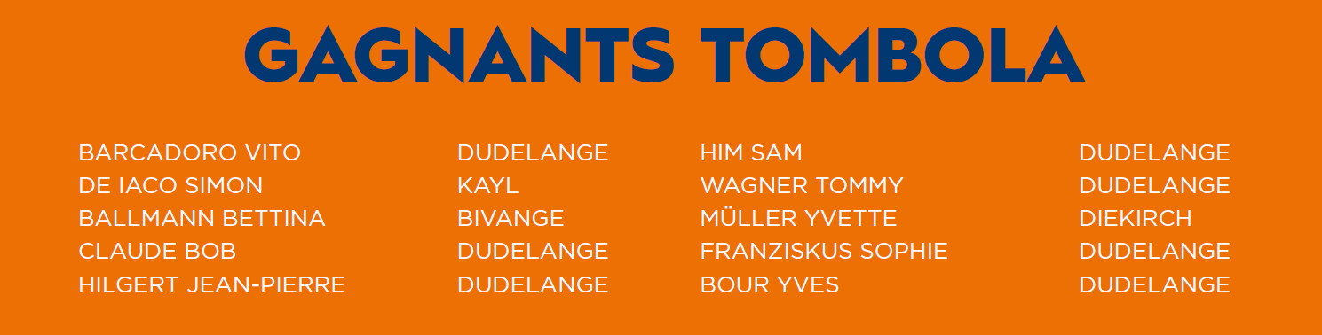 Les prix peuvent être retirés au Centre Sportif René Hartmann pendant le tournoi ou en vous adressant à un membre du Comité d’organisation du tournoi